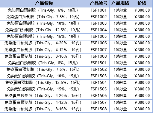 博鷺騰提供的蛋白預(yù)制膠提供不同濃度的梯度膠和固定濃度膠。梯度濃度包括(4-20%,4-12%與8-16%),固定濃度膠包括(6%、7.5%、10%、12.5%與15%)點(diǎn)樣孔數(shù)分別為10孔和15孔。其采用獨(dú)特的凝膠制備工藝制備而成,電泳效果極佳,兼容市面上各種電泳槽,具有適應(yīng)性廣、分辨率高、穩(wěn)定性高、條帶清晰均勻等優(yōu)點(diǎn)。
