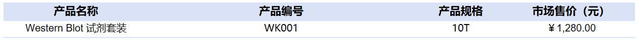 *部分試劑可根據(jù)具體使用需求進行替換,如0.22 μm PVDF膜可替換為0.45μm PVDF膜、5×蛋白印跡膜再生液溫和版可替換為強力版、HRP標記二抗可替換動物種屬等,具體要求和報價可聯(lián)系客服進行咨詢。
