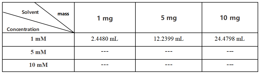 DMSO 中的溶解度 : 2 mg/mL (4.90 mM; 超聲助溶; 吸濕的 DMSO 對產(chǎn)品的溶解度有顯著影響,請使用新開封的 DMSO)