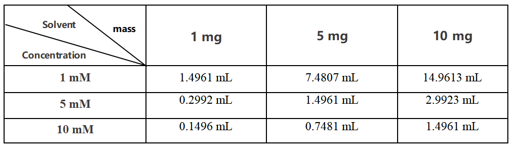 DMSO 中的溶解度 : 100 mg/mL (149.61 mM; 超聲助溶; 吸濕的 DMSO 對產品的溶解度有顯著影響,請使用新開封的 DMSO)