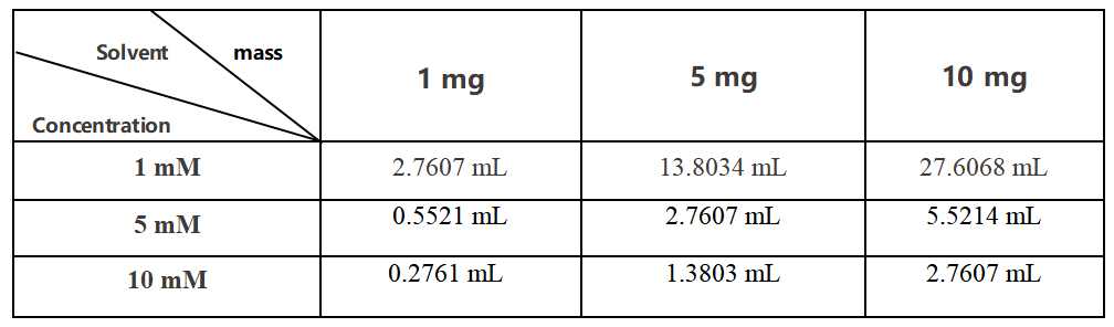 DMSO 中的溶解度 : 125 mg/mL (345.08 mM; 超聲助溶; 吸濕的 DMSO 對(duì)產(chǎn)品的溶解度有顯著影響,請(qǐng)使用新開封的 DMSO)