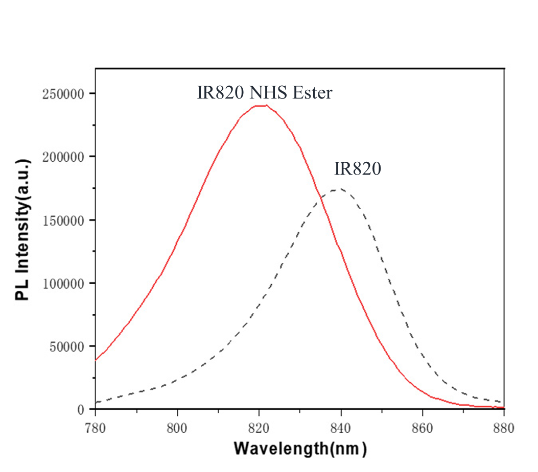 | IR820 NHS Ester和IR820在甲醇中的熒光光譜 |