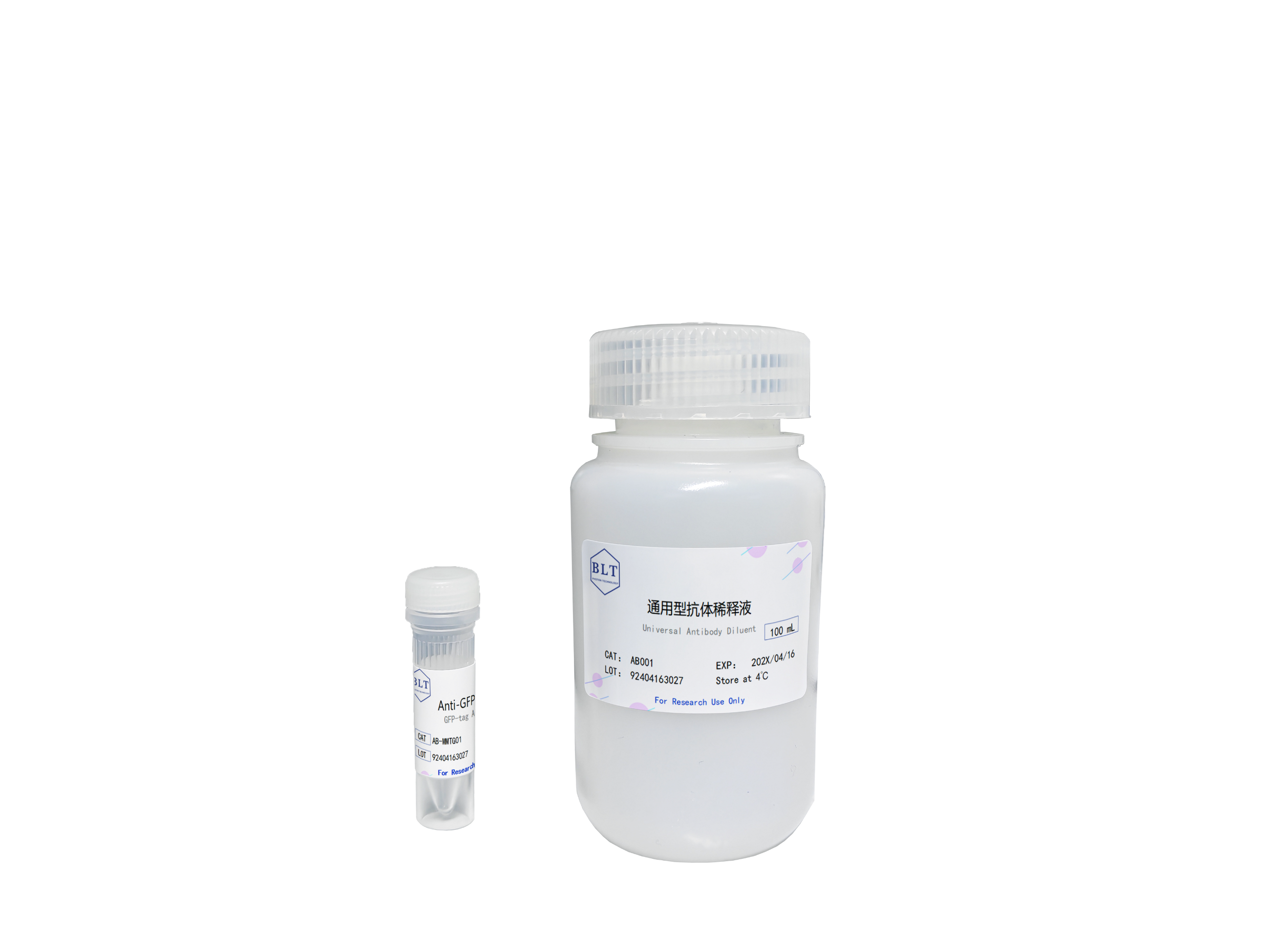 綠色熒光蛋白(GFP 標(biāo)簽)是一種 ~27 kDa 蛋白質(zhì),由 238 個(gè)氨基酸組成,來(lái)源于維多利亞水母。Anti-GFP抗體不僅可以檢測(cè)GFP或其適當(dāng)?shù)耐蛔凅w,也可以檢測(cè)和GFP或其適當(dāng)?shù)耐蛔凅w融合表達(dá)蛋白的表達(dá)、細(xì)胞內(nèi)定位,以及純化、定性或定量檢測(cè)GFP融合表達(dá)蛋白等。它在 395 nm波長(zhǎng)處吸收最多的光,其發(fā)射光譜在 507 nm 波長(zhǎng)處達(dá)到峰值。作為一種融合蛋白,GFP 已成為一種非常有用的工具,可報(bào)告基因表達(dá)、追蹤細(xì)胞系和確定亞細(xì)胞蛋白質(zhì)定位。本產(chǎn)品配套提供了通用型抗體稀釋液,可以用于Western檢測(cè)或其它適當(dāng)應(yīng)用時(shí)的抗體稀釋。
