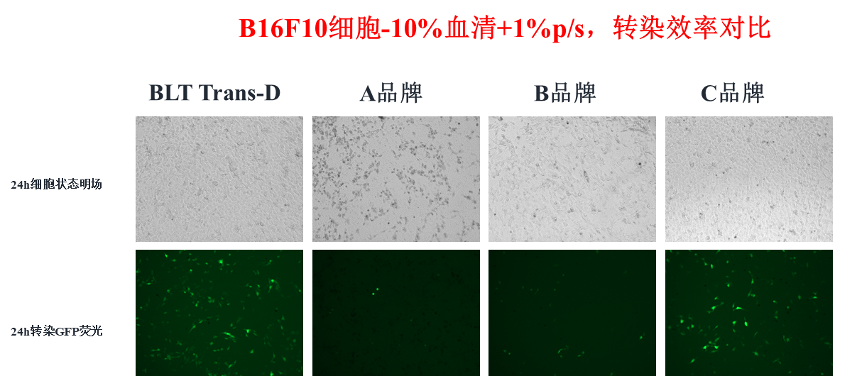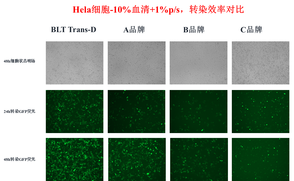 4.轉(zhuǎn)染試劑可用于有血清培養(yǎng)基的轉(zhuǎn)染,并且轉(zhuǎn)染前不需要換培養(yǎng)基。但是,制備轉(zhuǎn)染復(fù)合物時要求用無血清培養(yǎng)基稀釋DNA和轉(zhuǎn)染試劑,轉(zhuǎn)染時培養(yǎng)液中不添加抗生素;