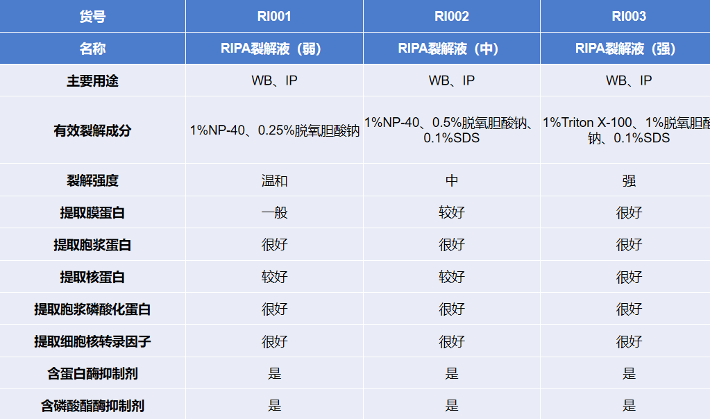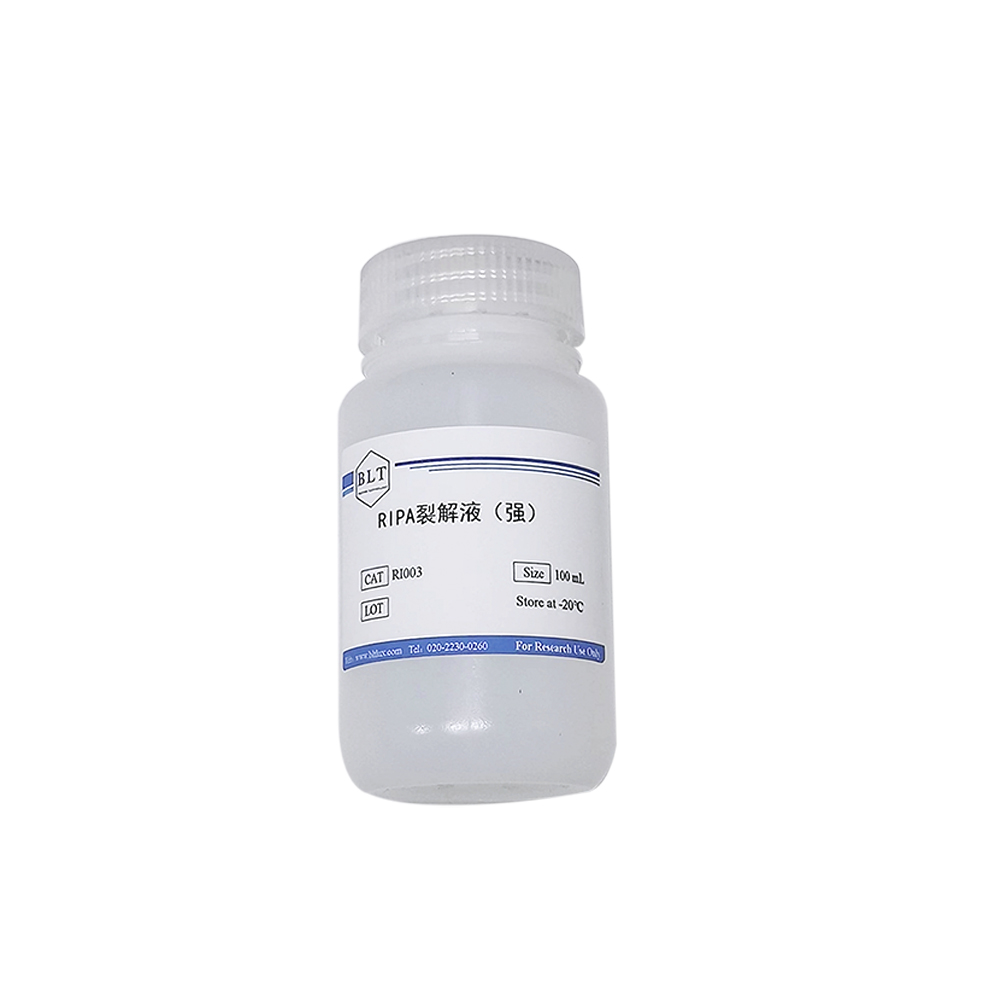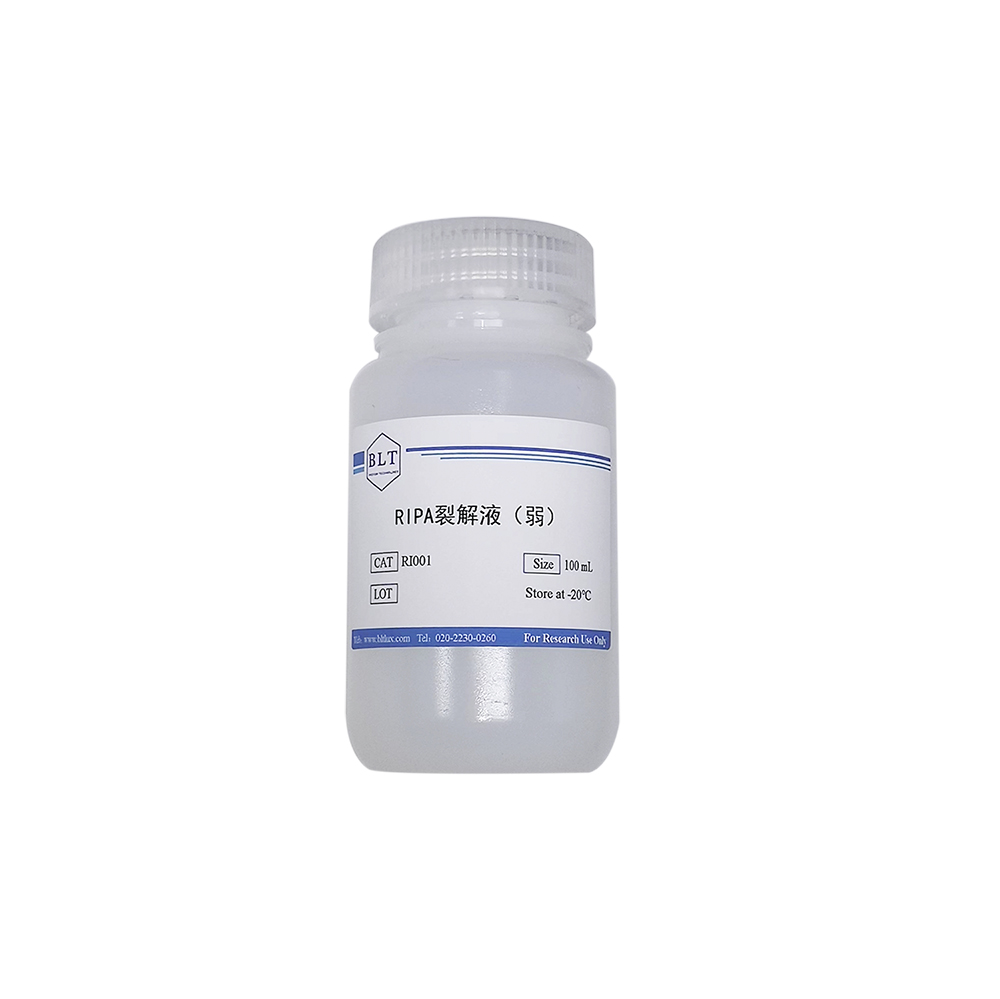 RIPA裂解液(RIPA Lysis Buffer)是一種傳統(tǒng)的細(xì)胞組織快速裂解液,RIPA裂解液裂解得到的蛋白樣品可以用于常規(guī)的Western Blot、IP、ELISA等。
