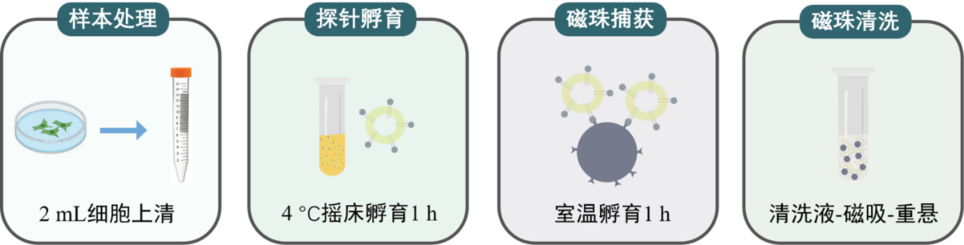 注:此體系可純化2 mL的細(xì)胞上清液樣本,為最佳分離效率體系及比例,可以按比例增加細(xì)胞上清液處理量,但外泌體的分離效率略有下降。