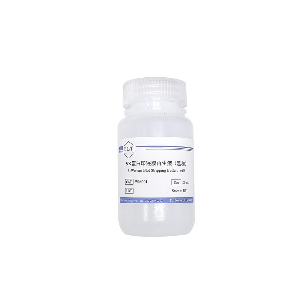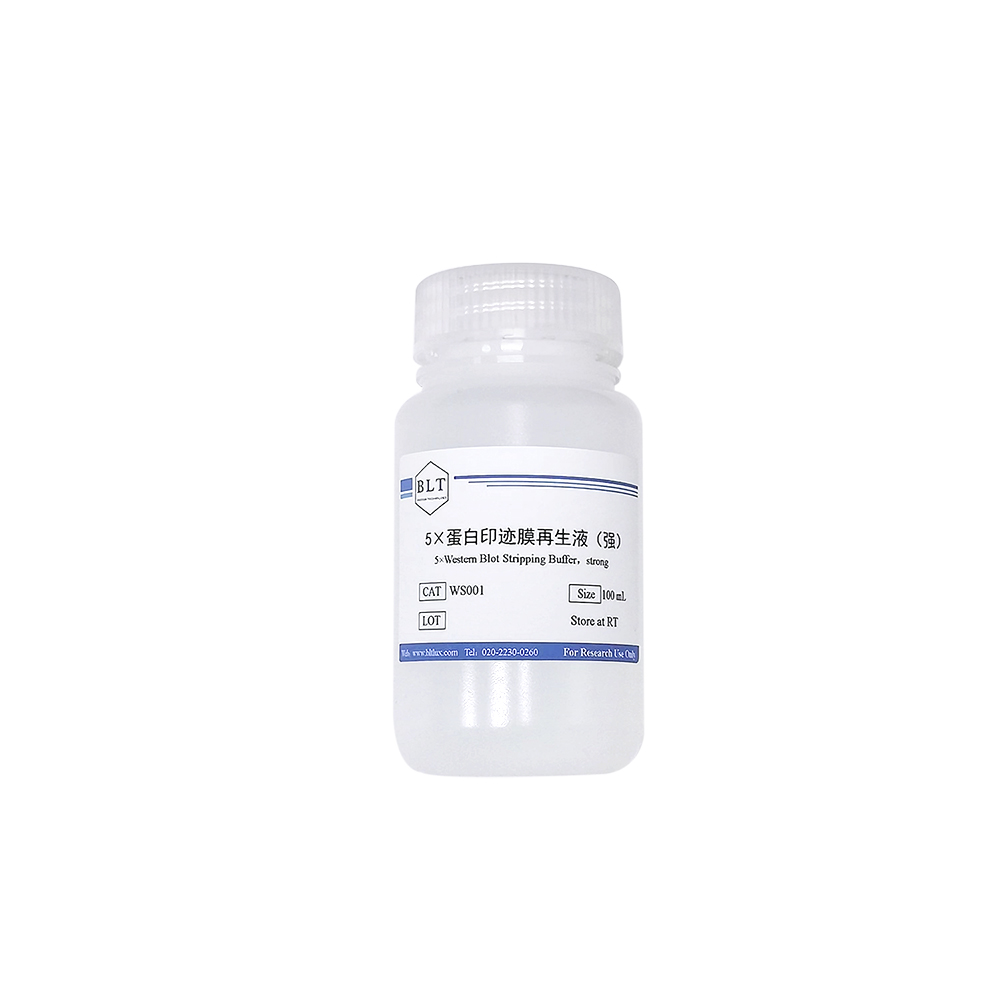 5×蛋白印跡膜再生液(5×Western Blot Stripping Buffer)是用于去除結(jié)合在蛋白印跡膜(PVDF膜或NC膜)上的一抗和二抗的洗滌液。在不影響目的蛋白的情況下,可使同一張蛋白印跡膜進(jìn)行多次抗體檢測。省去反復(fù)電泳和轉(zhuǎn)膜等步驟,操作簡單快速。