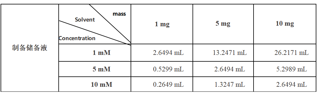 注:體內(nèi)實(shí)驗(yàn)的工作液,建議您現(xiàn)用現(xiàn)配,當(dāng)天使用;如在配制過(guò)程中出現(xiàn)沉淀、析出現(xiàn)象,可以通過(guò)加熱或超聲的方式助溶。