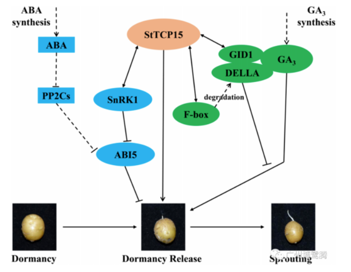 StTCP15在馬鈴薯塊莖休眠和發(fā)芽過程中的假定途徑模型