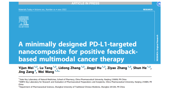近日,中國藥科大學(xué)藥學(xué)院天然藥物國家重點實驗室王偉團隊在研究中發(fā)現(xiàn)新型靶向納米復(fù)合材料可正反饋介導(dǎo)多模式癌癥的治療,相關(guān)研究成果已發(fā)表在國際知名期刊《Materials Today》(IF=26.943,一區(qū)top期刊)上。