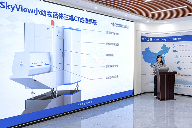 博鷺騰市場部經(jīng)理和應(yīng)用工程師詳細(xì)介紹了博鷺騰動(dòng)物活體光學(xué)成像產(chǎn)品、動(dòng)物活體成像相關(guān)試劑、分子影像系列產(chǎn)品以及植物活體成像系列產(chǎn)品,并重點(diǎn)分享了博鷺騰今年新推出的SkyView系列小動(dòng)物活體CT多模態(tài)融合成像系統(tǒng)。