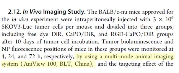 在進行CaPO/DiR標(biāo)記小鼠與SKOV3-Luc小鼠活體成像的實驗中,使用了AniView系列多模式動物活體成像系統(tǒng)進行拍攝。