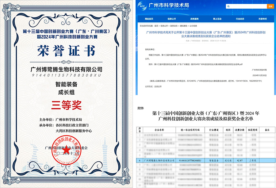近日,博鷺騰在第十三屆中國創(chuàng)新創(chuàng)業(yè)大賽(廣東·廣州賽區(qū))暨2024年廣州科技創(chuàng)新創(chuàng)業(yè)大賽中,憑借卓越的創(chuàng)新技術(shù)和產(chǎn)品,榮獲智能裝備組三等獎。