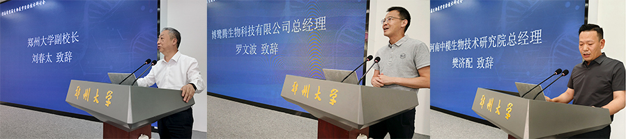 揭牌儀式上,劉春太副校長、羅文波總經(jīng)理、樊濟(jì)配總經(jīng)理分別介紹了鄭州大學(xué)、廣州博鷺騰和河南中模生物的有關(guān)情況,并就應(yīng)用中心未來在推動(dòng)科研創(chuàng)新、成果轉(zhuǎn)化以及行業(yè)技術(shù)進(jìn)步方面的重要潛力與廣闊前景進(jìn)行了展望。