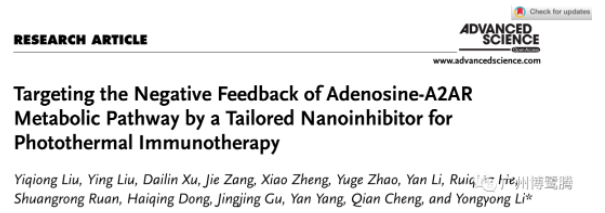 近日,同濟大學醫(yī)學院李永勇教授課題組證明了免疫抑制代謝物腺苷的增加在光熱療法(PTT)誘導的免疫原性細胞死亡(ICD)過程中起到負反饋調(diào)節(jié)作用,會嚴重抑制抗腫瘤免疫治療的效果。在此基礎(chǔ)上,該團隊開發(fā)了一種具有強大抗腫瘤免疫效果的納米系統(tǒng),能夠抑制原發(fā)腫瘤和異位腫瘤的生長,并減少其轉(zhuǎn)移。相關(guān)研究成果已發(fā)表在國際知名期刊《Advanced Science》(IF: 16.806)。