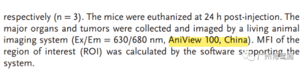 文章中,評估標記FITC的納米材料在活體的分布代謝和腫瘤靶向情況,使用了博鷺騰多模式動物活體成像系統(tǒng)AniView100拍攝。