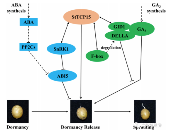 StTCP15在馬鈴薯塊莖休眠和發(fā)芽過程中的假定途徑模型