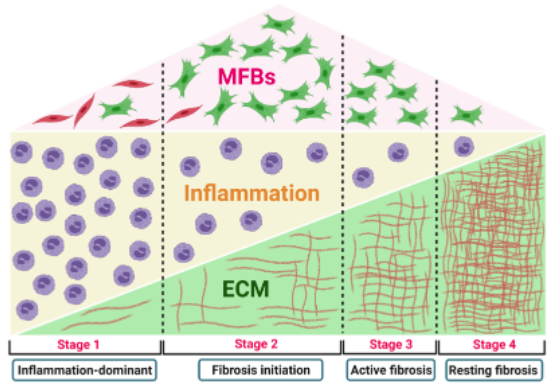 HRCT對纖維化的診斷需要肺部呈現(xiàn)“條索”或“蜂窩”樣的結(jié)構(gòu),而這時纖維形成已進(jìn)入不可逆的中晚期 (Stage3或Stage4)。