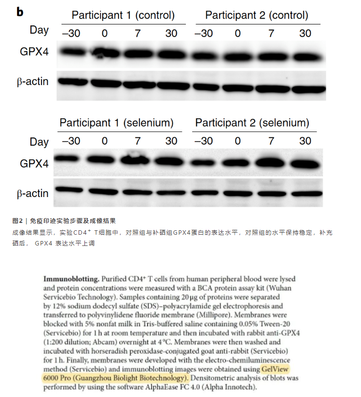 文章中,通過(guò)Western Blot實(shí)驗(yàn)對(duì)CD4+ T 細(xì)胞GPX4蛋白表達(dá)水平進(jìn)行成像檢測(cè),其實(shí)驗(yàn)成像檢測(cè)系統(tǒng)為博鷺騰GelView 6000 Pro全自動(dòng)化學(xué)發(fā)光成像系統(tǒng)。