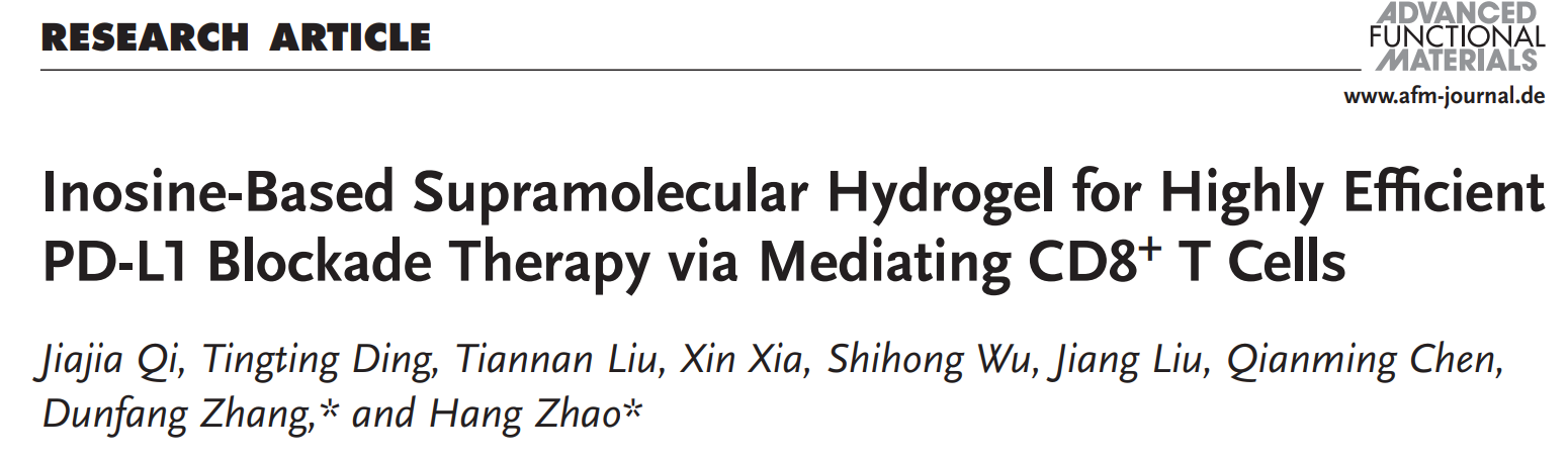 近日,四川大學(xué)華西口腔醫(yī)學(xué)院趙行團(tuán)隊(duì)在開(kāi)發(fā)分子水凝膠進(jìn)行D-L1阻斷治療方面取得了研究進(jìn)展。相關(guān)研究成果已發(fā)表在國(guó)際知名期刊《Advanced Functional Materials》(IF=19.924、一區(qū)top期刊)上。