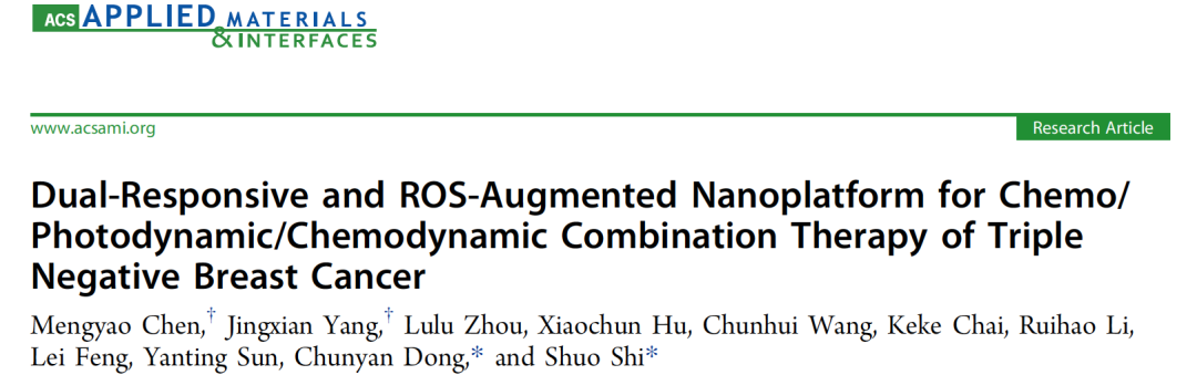 近日,同濟大學醫(yī)學院上海東方醫(yī)院腫瘤科化學科學與工程學院石碩教授在納米平臺用于腫瘤聯(lián)合治療的研究方面取得了新的進展。相關(guān)研究成果已發(fā)表在國際知名期刊《ACS Applied Materials & Interfaces》(IF=9.229、一區(qū)top期刊)上。