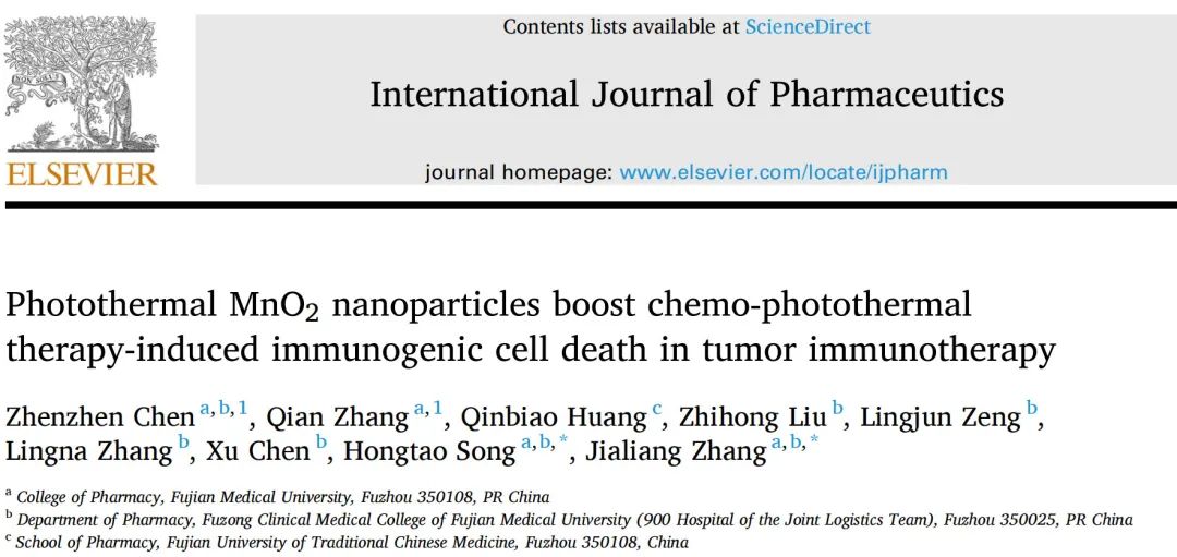 近日,福建醫(yī)科大學(xué)福州總醫(yī)院藥學(xué)科主任宋洪濤教授的研究團(tuán)隊(duì)在二氧化錳納米材料的制備和化學(xué)光熱療法治療腫瘤方面取得了重要進(jìn)展,相關(guān)研究成果“Photothermal MnO2 nanoparticles boost chemo-photothermal therapy-induced immunogenic cell death in tumor immunotherapy”已經(jīng)發(fā)表在醫(yī)學(xué)綜合期刊《International Journal of Pharmaceutics》(IF:6.51,一區(qū)Top期刊 )上。